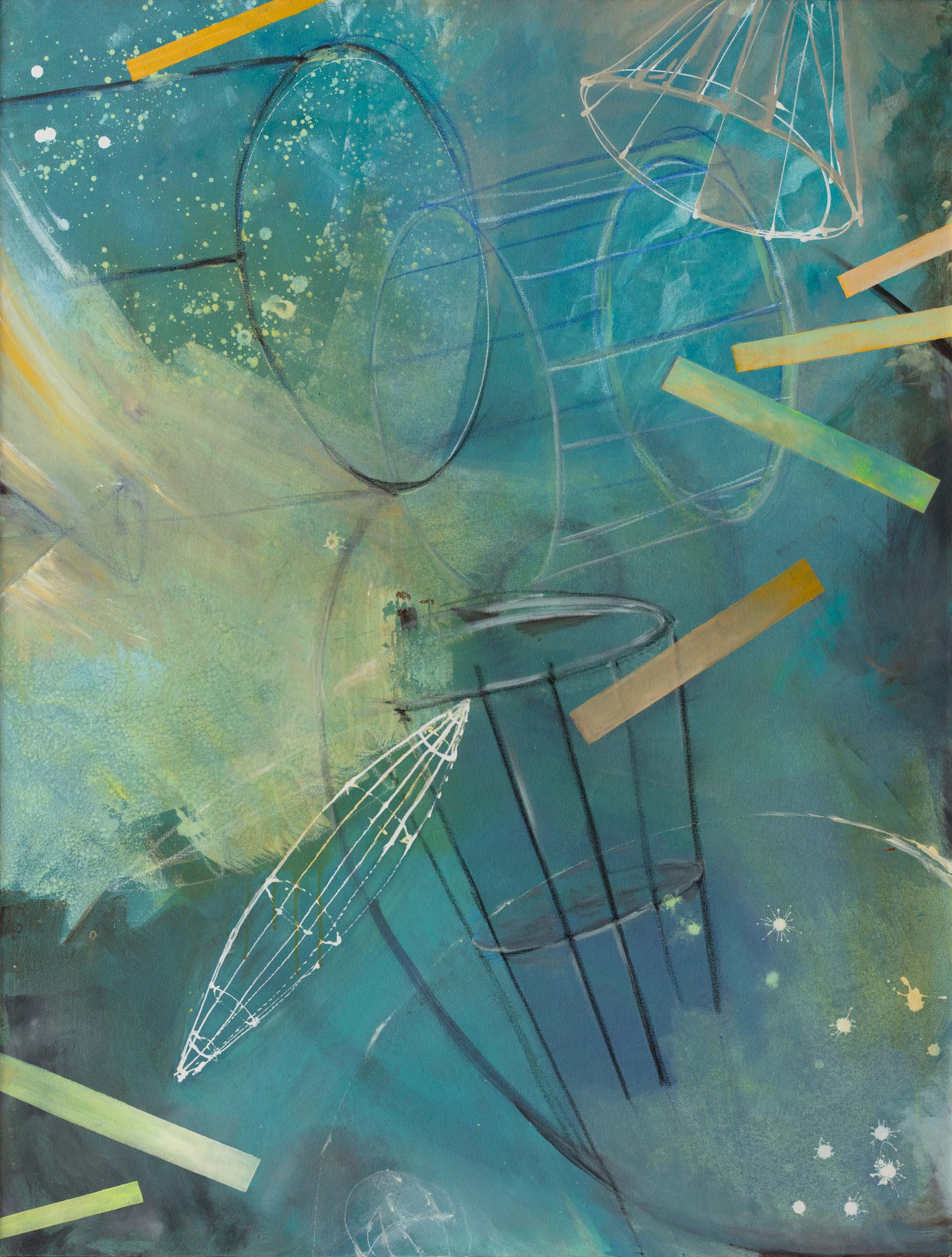 abstract, aqua, azure, circles, contemporary, electric blue, futurism, futuristic, gears, geometric, glass, graphic, instruments of a lost future, line, line drawing, lines, mixed media, modern, movement, mystic, part of a series, physics, series, shapes, space, spheres, splatter, stefani peter, strong, surreal, time